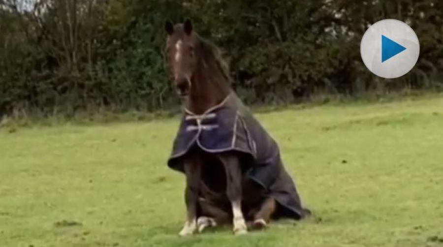 Gareth Hughes, Storbritannien, har en häst som vet hur man tar det lugnt. Varför inte sätta sig ner i hagen och bara njuta en stund?