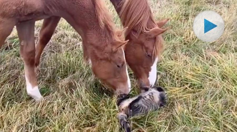 ÅTERPUBLICERAS 2021-09-09: Fölet Rocky, hans ettåriga helsyster Rhapsody och treåringen Unni får besök av stallkatten Tarzan. Dags för en mysstund tillsammans i hagen. Se klippet från Elin Niklasson.