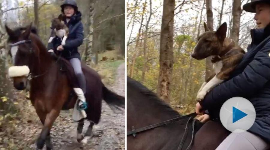 När Nikita och hennes mamma Heidi var ute på långpromenad blev hunden Ballerina trött. Då fick hon en ridtur på ponnyn Amadeus rygg, väl instoppad i mattes varma jacka.