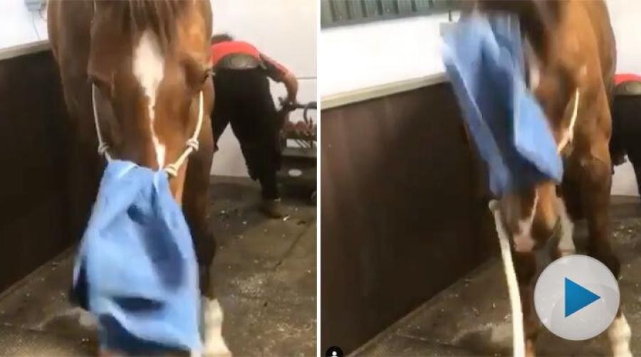 Har ni några tricks för att få era hästar att stå still när de skos? Här är annars lite inspiration – distraktion för såväl ögon som öron. Glöm inte att sätta på ljudet!