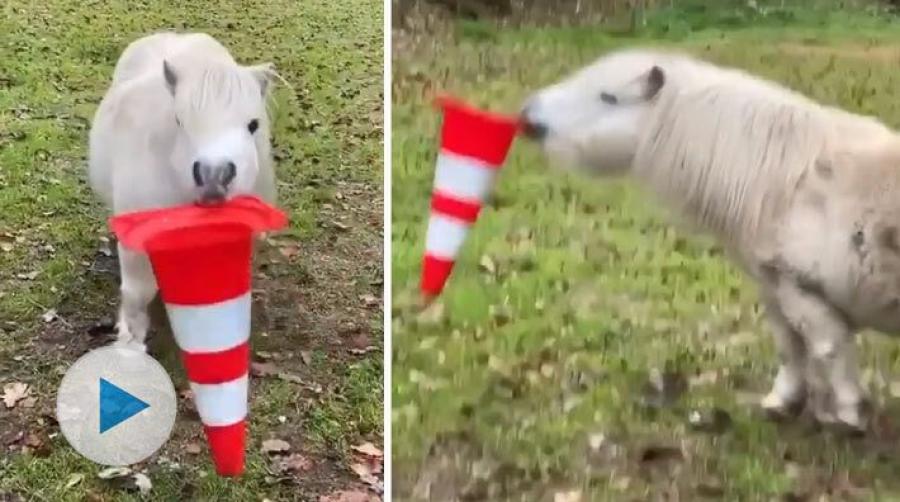 Den här lilla ponnyn är otroligt nöjd med sin alldeles egna leksak i hagen. Ibland krävs det inte så mycket mer än en helt vanlig kon för att göra dagen komplett!