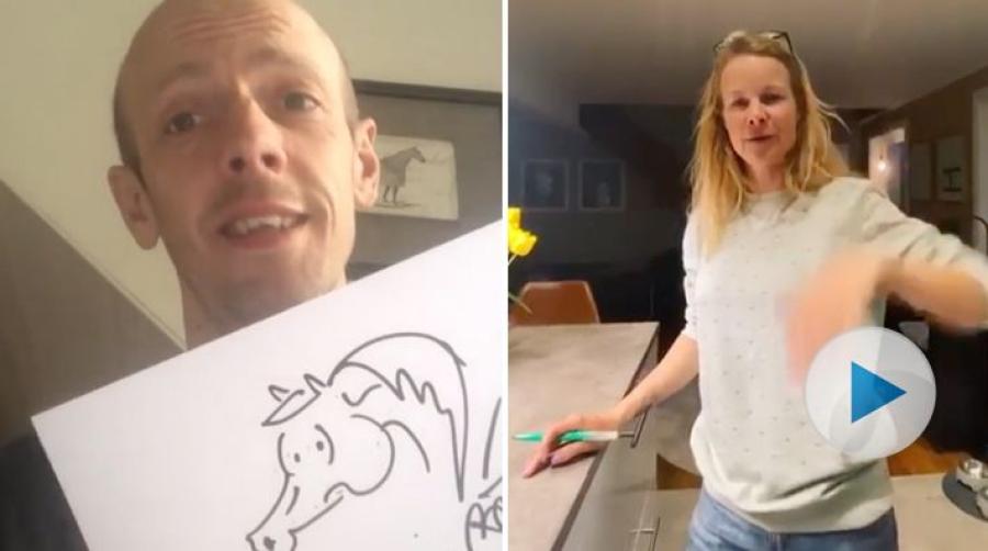 Peder Fredricson har utmanat sina kollegor i att teckna en häst. Nu har flera personer, både ryttare och konstnärer, antagit utmaningen och har ritat sina fyrbenta vänner. Här har vi samlat några av konstverken. I klippet ovan är det Malin Baryard Johnsson som ritar en häst.