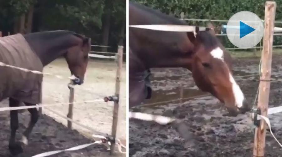 En stängd hage stoppar inte denna härliga häst – som har lärt sig att öppna grinden alldeles själv! Varför vänta på en människa när man kan lösa saker och ting på egen hand? Se det roliga klippet ovan.