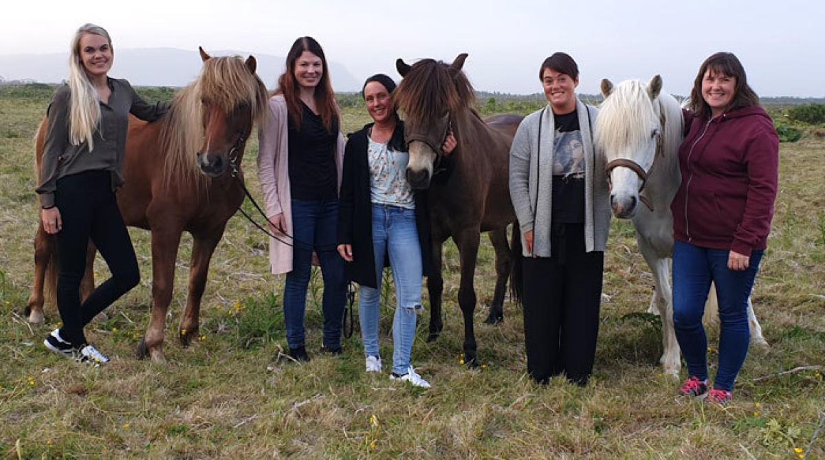 Samtliga sju kom från Sverige till Selfoss för att arbeta med hästar, de flesta skulle bara stanna ett tag. I dag är de alla tillsammans med isländska män, jobbar med isländska hästar och umgås regelbundet i sin grupp de kallar ”Svinglorna”. En ordlek med Sverige, Island och pinglorna.