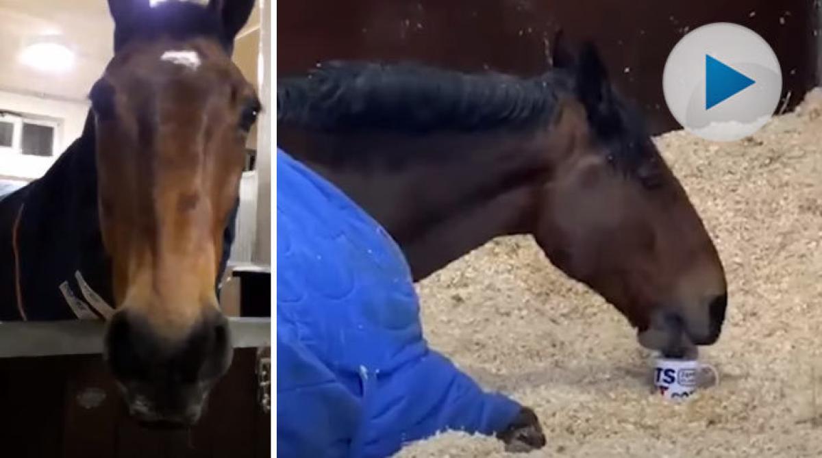 Polishästen Jake dricker te varje morgon