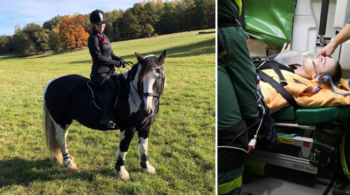 Lös hund skrämde hästarna – Bella trillade av och bröt bäckenet: "Kunde inte röra mig"