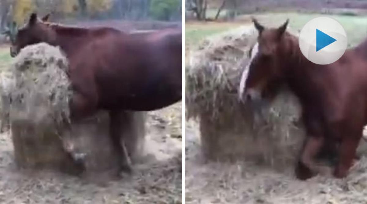 Varmblodet Cisco ville verkligen klia sig, och tänkte att man får väl använda sig av det som finns i närheten. Den nya höbalen fick bli lösningen på problemet. Missa inte det härliga klippet!