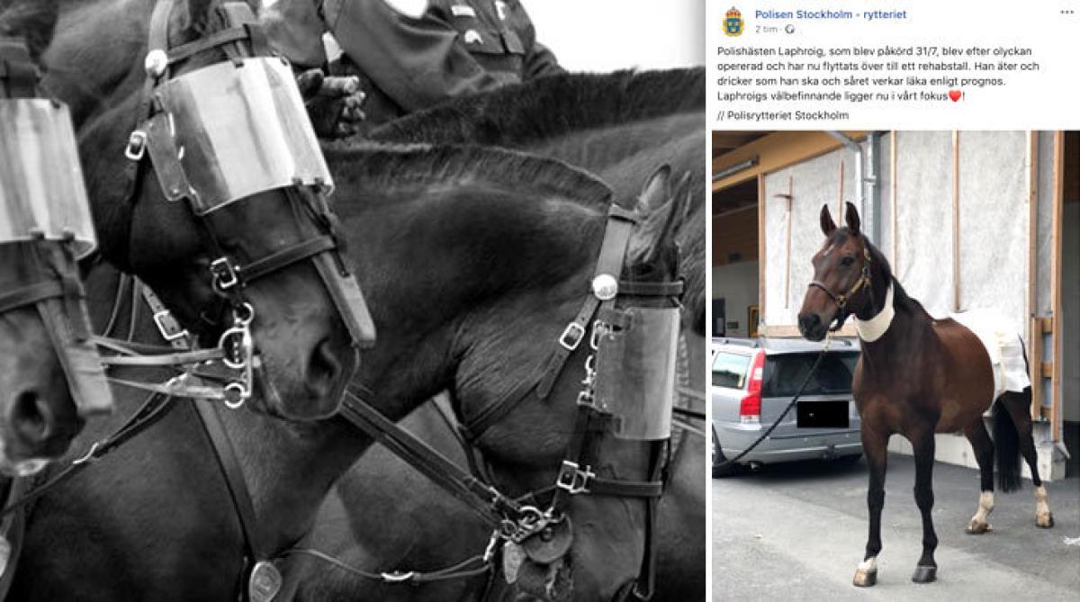 Polisrytteriet i Stockholm lämnar glädjande besked via Facebook under fredagseftermiddagen. Laphroig, polishästen som blev påkörd för ett par veckor sedan, är opererad och läker enligt prognos.