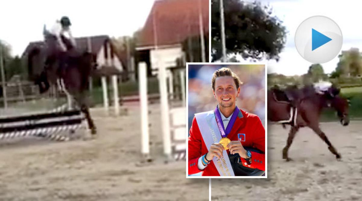 Att man tränar för en av världens bästa ryttare är ingen garanti för att det aldrig går snett. Det här "fail-klippet" är upplagt av självaste Martin Fuchs från Schweiz, som vann individuellt guld på EM i Rotterdam i somras tillsammans med Clooney.