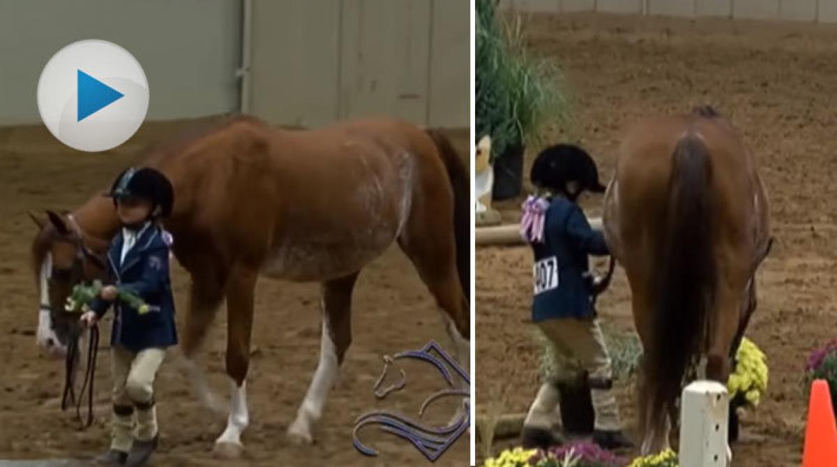 Att leda en hungrig ponny runt en hinderbana, kantad av smaskiga dekorationsväxter, visade sig vara lättare sagt än gjort. Den här flickan kom dock på ett trick för att få ponnyn med på noterna. Varför inte ta blommorna med sig och locka ponnyn med en liten muta på vägen? Se det roliga och söta klippet i Hippson-TV.