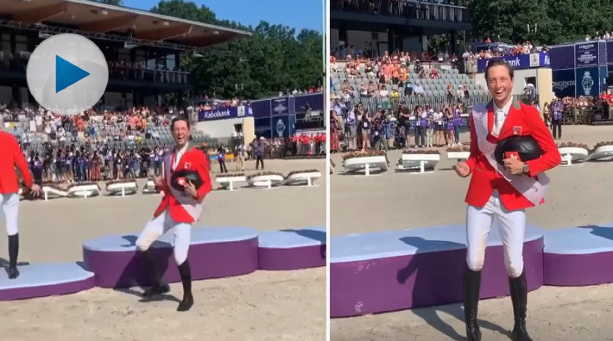 Det var både skratt och tårar när Martin Fuchs red in på sin Clooney 51 för att ta emot guldmedaljen efter EM-finalen i Rotterdam. Den schweiziska ryttaren bjöd även på en vacker segerdans, se den ovan. Ekipagets finalrunda hittar ni här.