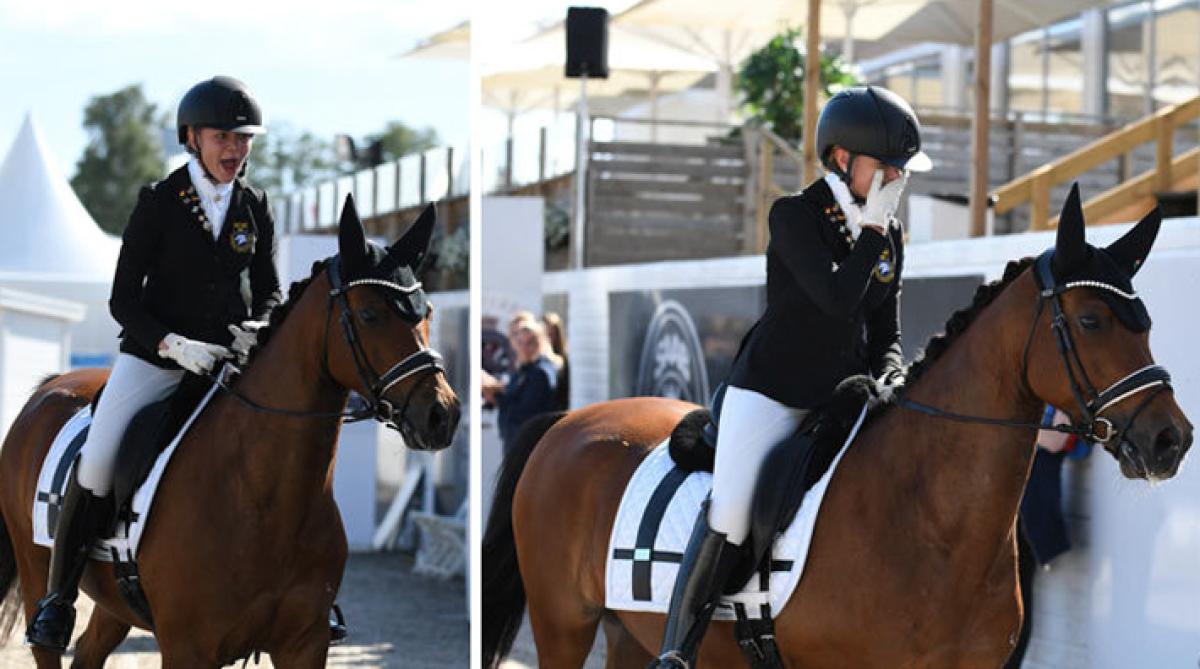 ”Jag ska bli galoppör eller fälttävlansnordis när jag blir stor 😂😂. Han är duktig på galoppombyten 👌!”