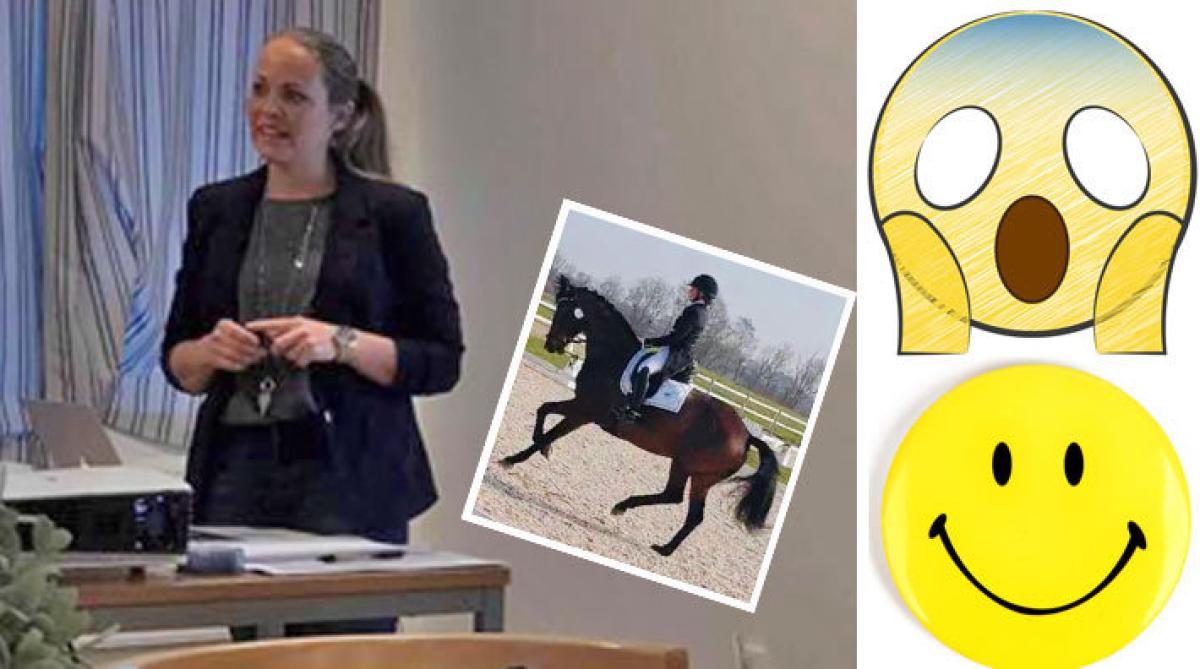 Emelie Espegren är psykologisk coach och har efter sin utbildning riktat in sig på idrottspsykologi och mental träning. Hon är själv ryttare och tävlar dressyr upp till Prix S:t Georges. Hennes föreläsning om hur vi kan öka prestationsförmågan genom att ändra vårt tankemönster illustrerar hon med sina medhjälpare – två emojifigurer vid namn Gunde och Ove.