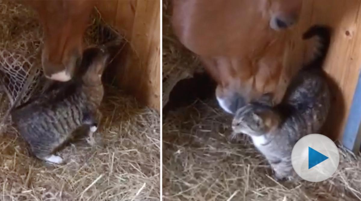 Katten Bosse och hästen Capella kelar gärna med varandra: "Alltid visat ödmjukhet mot katter"