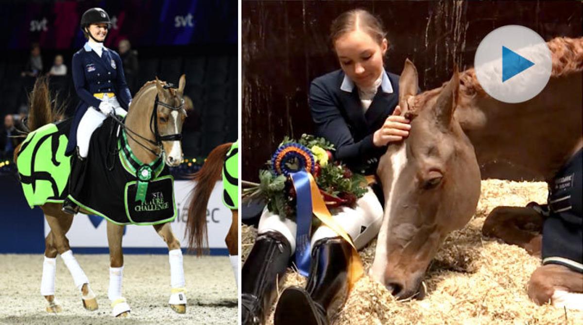 Trött och nöjd när man har vunnit i Friends – HUR söt är inte Ninas dressyrstjärna Dorano?