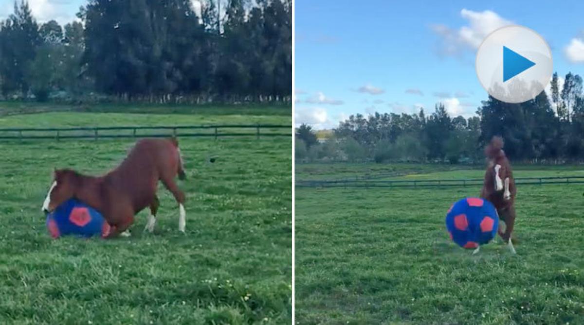 Den här hästen hade antagligen varit fotbollsspelare om den varit människa – bollkontrollen är i alla fall total.
