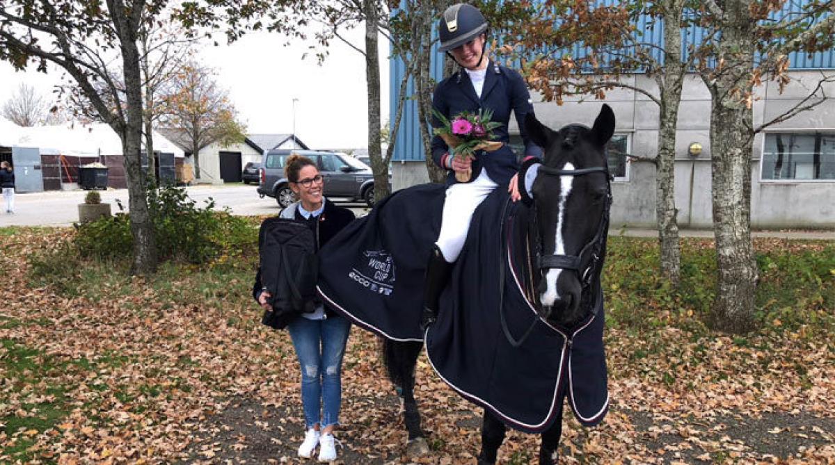 Vid fredagens Grand Prix-dressyr i Helsingfors kom Jeanna Högberg trea med hingsten Duendecillo P.
