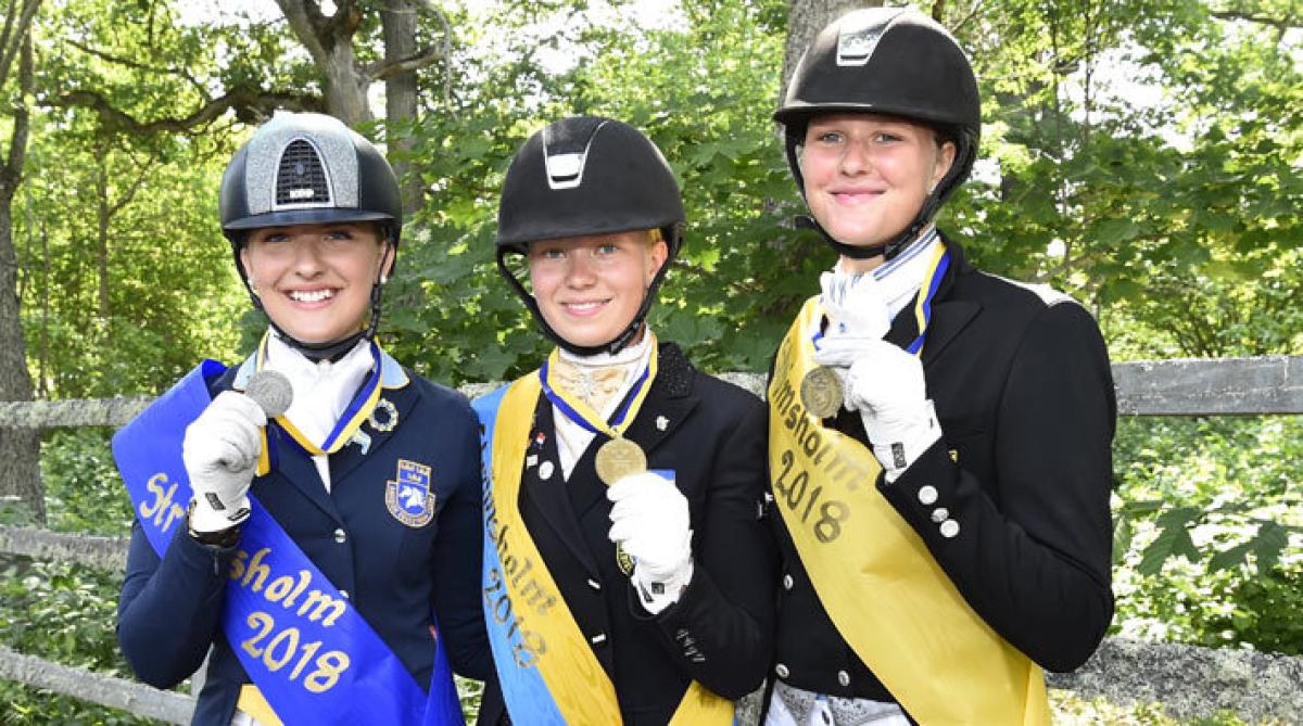Evelina Söderström och rutinerade Weihenstephaner vann dressyr-SM för unga ryttare på Strömsholm. Senare i eftermiddag rider 18-åringen, hon fyller nästa vecka, även juniorfinalen.