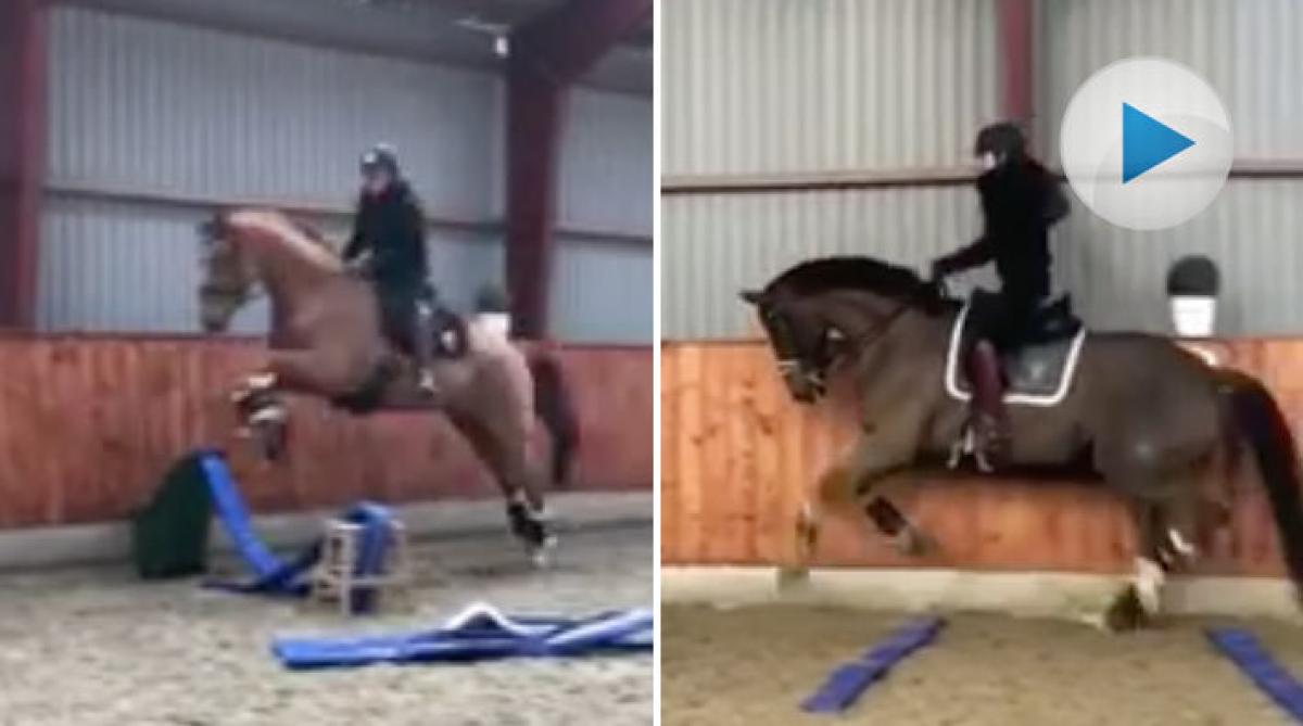 Världstrean i dressyr busar loss i hoppningen