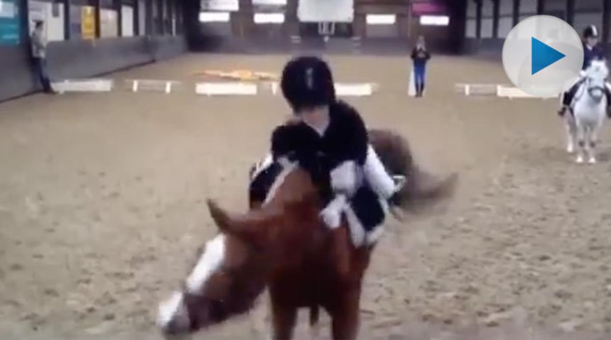 Den här lilla ryttaren råkar ut för en annorlunda avsittning, i halt, när ponnyn får för sig att ruska lite på sig.