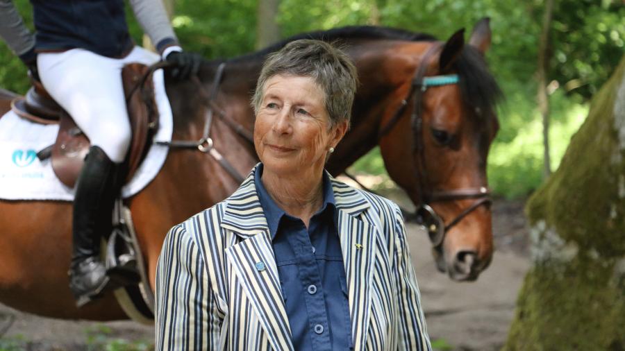 Dressyrryttaren Ulla Håkanson har länge varit en stark förespråkare av att träna hästar i skog och mark. I höst fyller hon 80, Ulla red sitt 47:e SM tidigare i år.