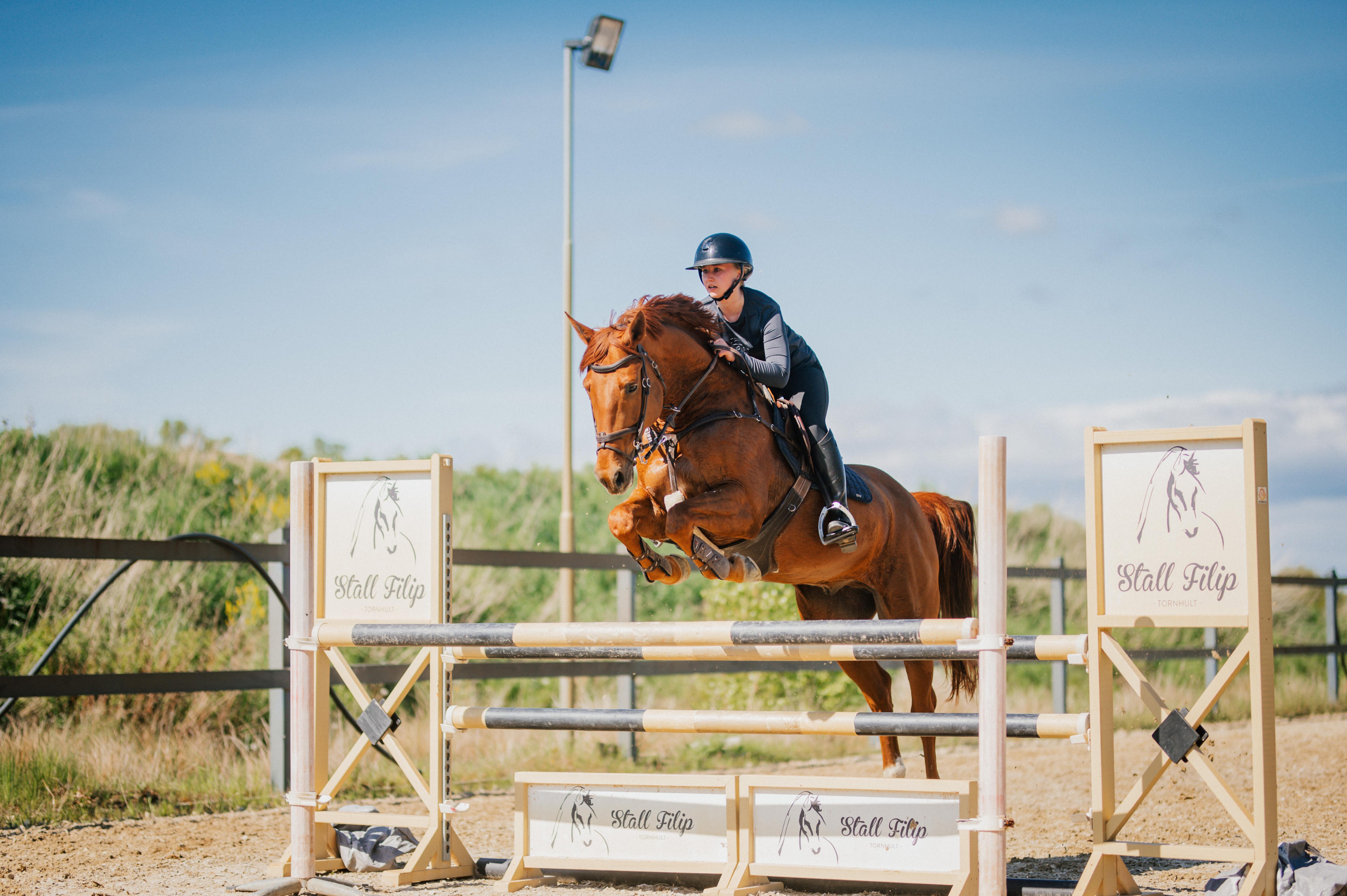 I denna övning drar Niclas Haking paralleller till höjdhoppning inom friidrotten. Här tränar du på att få hästen att komprimera sig före hindret för att kunna hoppa uppåt med kraft istället för långt framåt.