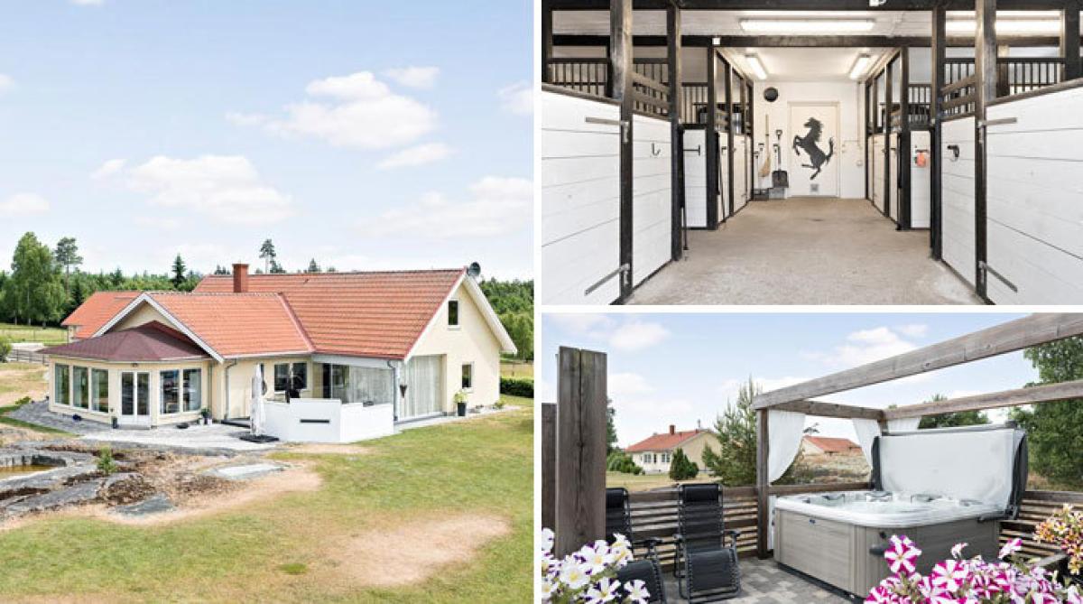 "Veckans gård" hittar vi i området Skir, bara cirka tio minuter från centrala Växjö. På altanen finns en härlig jacuzzi och ovanpå garaget en gästlägenhet. Stallet har plats för fyra hästar. En perfekt gård för hästfamiljen.