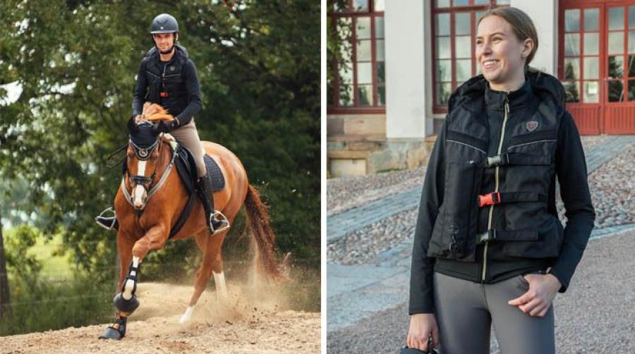 En uppblåsbar säkerhetsväst ger det bästa skyddet om olyckan skulle vara framme, samtidigt som den inte påverkar rörelseförmågan i sadeln. EQ3 Spark Air Vest skyddar ryttaren från nacken ner till svanskotan.