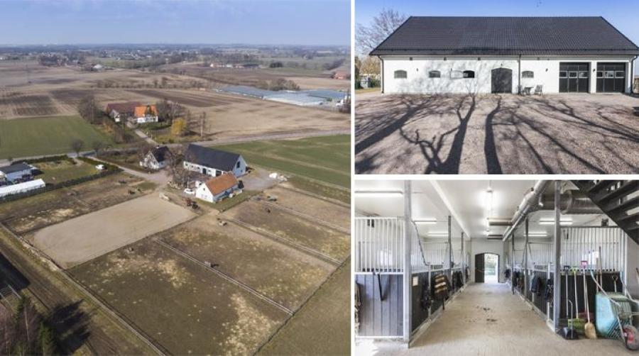 Utanför Helsingborg hittar vi en fin liten hästgård med sex boxar, egen ridbana och renoverat boningshus. Här bor man med öppna fält som granne.
