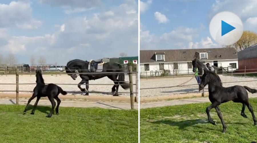 Medan den snygga frieserhästen Harvey tömkörs på ridbanan passar fölet Syb på att stjäla rampljuset. Visst visar han sin potential för åskådarna?
