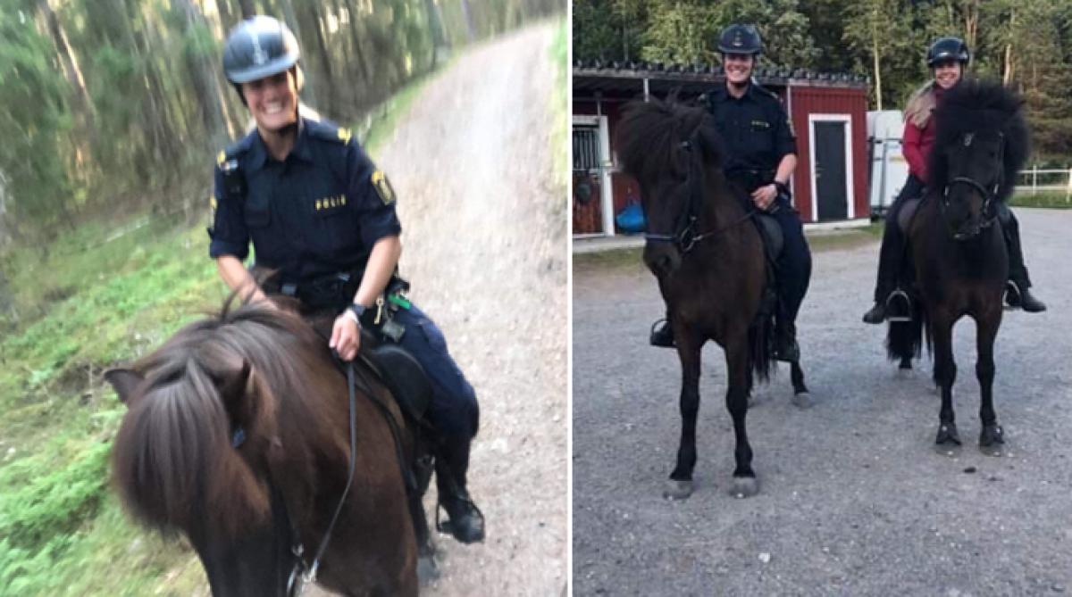 När Filippa Sundqvist var ute och red med en kompis i söndags ramlade hon av sin häst. Hennes mamma kom till undsättning med bil, men blev stoppad av polisen efter att ha kört på en gångväg. Men i stället för att ge böter bestämde sig polisen Viktoria Wicén för att rida hem hästen.