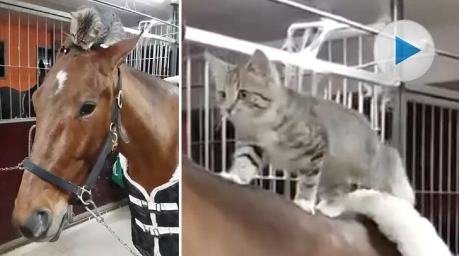 Den här söta hästen har fått en fin frisyr. Flätan är faktiskt helt oemotståndlig. I alla fall om man är en liten kattunge som tar varje chans att utforska världen och att leka. Även om det innebär att man måste klättra på en stor, stor häst. Se det söta klippet från Sophro Cavaliers.